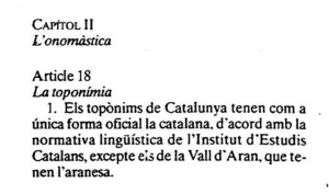 El Parlament de Catalunya promulgava, el 7 de gener de 1998, la Llei 1/1998, de Política Lingüística. Avui fa vint-i-cinc anys d’aquell fet, i fa el mateix temps que diversos ajuntaments n’incompleixen, impunement, l’article 18.1, que diu que els topònims oficials de Catalunya han de ser catalans i estar escrits segons les normes lingüístiques de l’IEC. Per contra, hi ha ajuntaments que tenen formes aberrants com a noms oficials, o plenes de faltes, i fins i tot encara queden quatre municipis que tenen com a oficial la toponímia d’imposició franquista, i alguns topònims estan en castellà o en anglès. Tot plegat és un demèrit i un desprestigi pel nostre idioma: que els noms de determinats llocs s’hagin d’escriure com mana i ordena la cacicada local i no com disposen la Llei i la ciència només és indicatiu de corrupció i de subdesenvolupament.