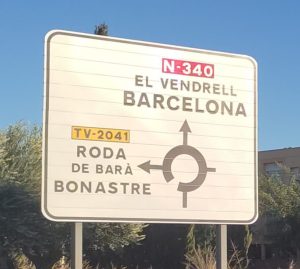 A la rotonda de la carretera N-340 que la uneix amb la TV-2041 hi ha uns cartells, abans d’arribar a la rotonda, que indiquen la població de Roda de Berà amb una grafia del topònim que no és oficial, “Roda de Bará”. A la mateixa rotonda, just a la sortida cap a la carretera TV-2041, un altre indicador conté l’expressió “Roda de Bará”.