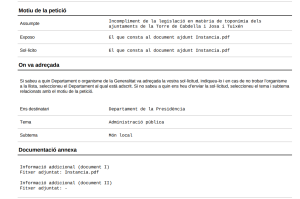 Per tot això, i posant en coneixement de la Direcció General d’Administració Local les infraccions descrites, li hem demanat que dugui a terme les accions administratives i legals necessàries per tal de garantir que els ajuntaments de Josa i Tuixén i la Torre de Cabdella actuïn amb submissió plena a la Llei i al Dret i, per tant, que compleixin la legislació lingüística en matèria de toponímia, que s’abstinguin d’usar formes toponímiques que no són les oficials i que usin exclusivament les que són oficials en tota la documentació en paper i electrònica, cartells i senyals de qualsevol tipus, i a tot arreu on la legislació hi obligui.