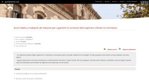 Demanen al Parlament que adopti mesures per a garantir la correcció dels topònims oficials no normatius