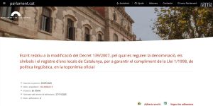 Demanem al Parlament que insti el Govern a modificar l’antijurídic Decret 139/2007 i a complir la Llei de Política Lingüística a la toponímia