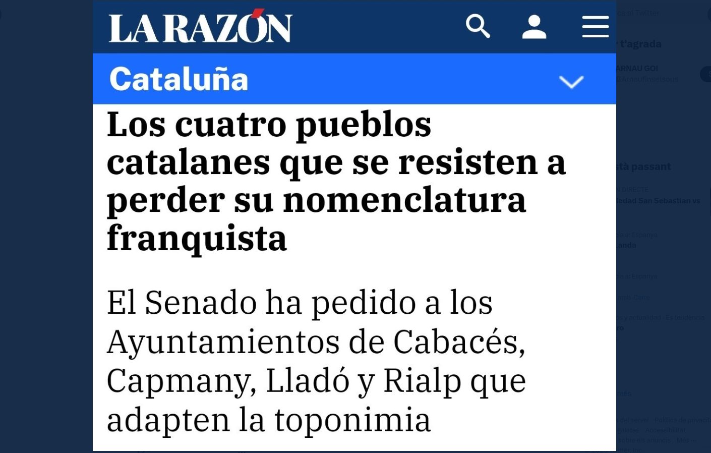 Así pues, los topónimos Cabacés, Capmany, Lladó y Rialp deben retirarse por una doble razón contemplada en la Ley 20/2022, de 19 de octubre, de Memoria Democrática:
